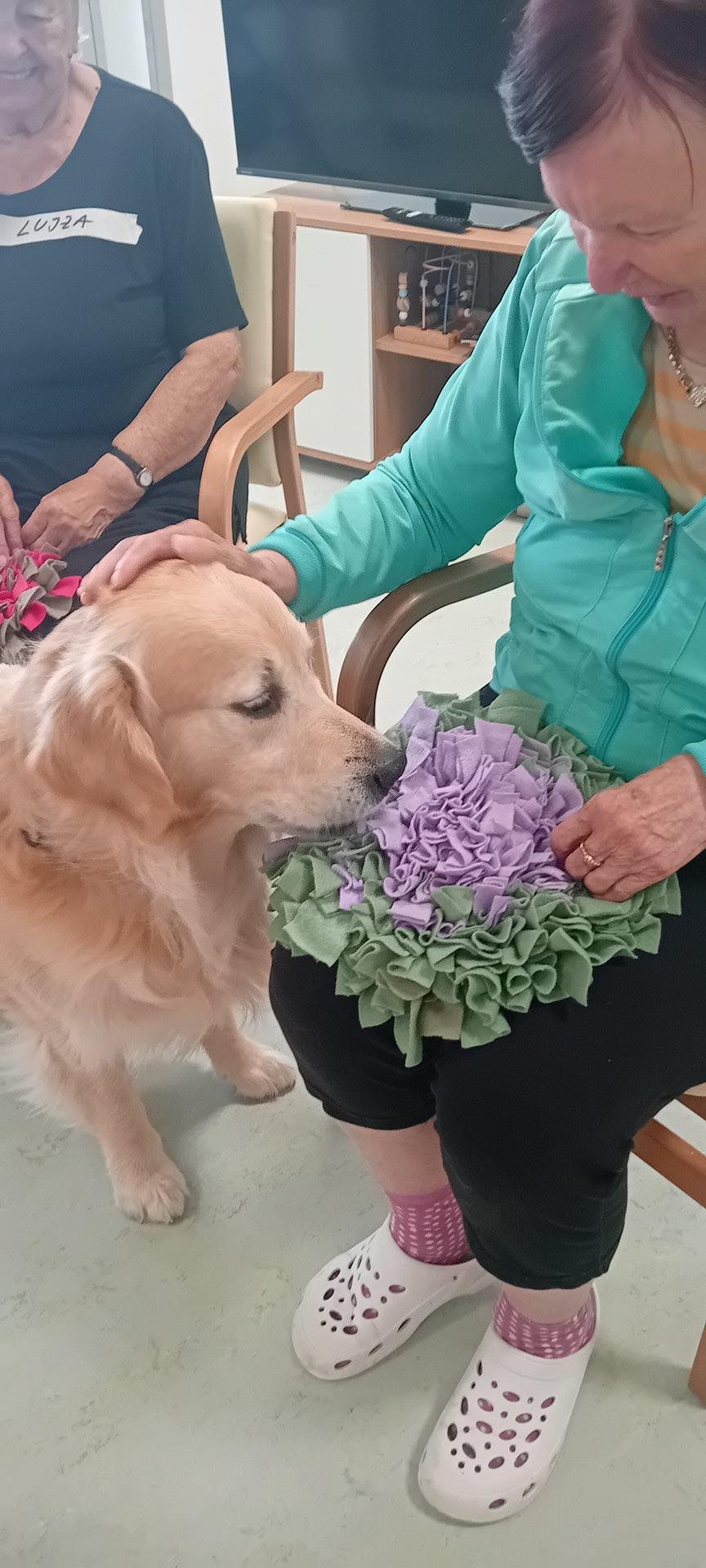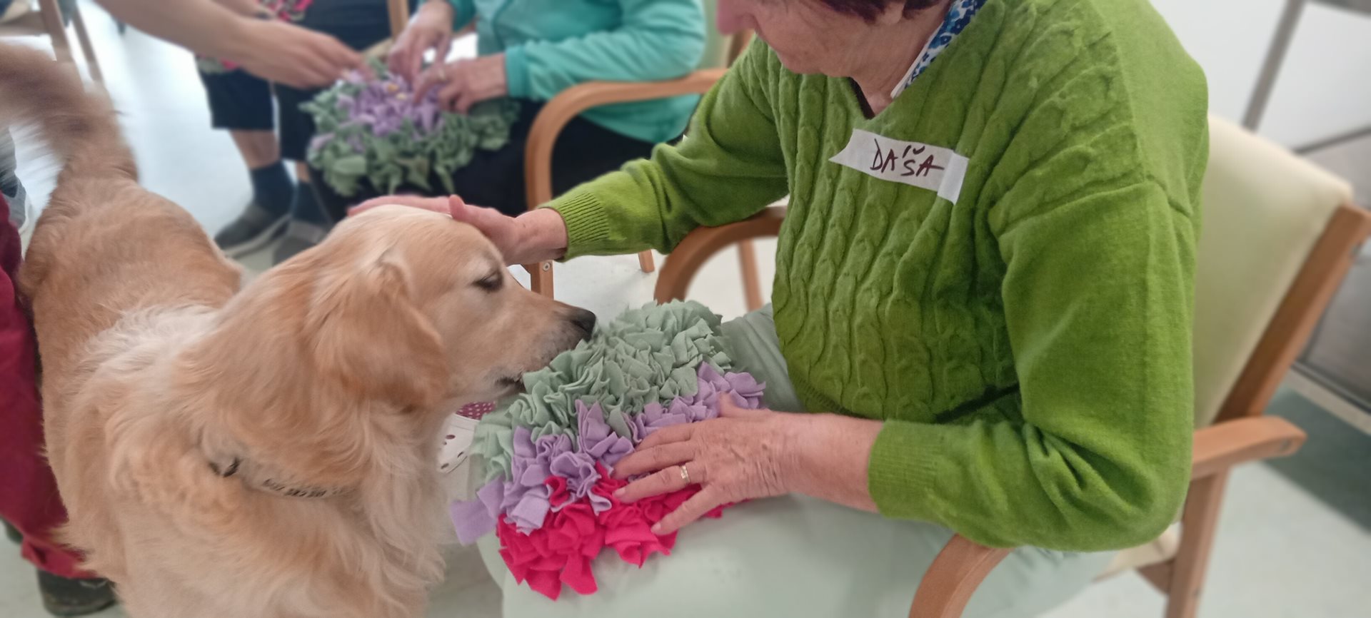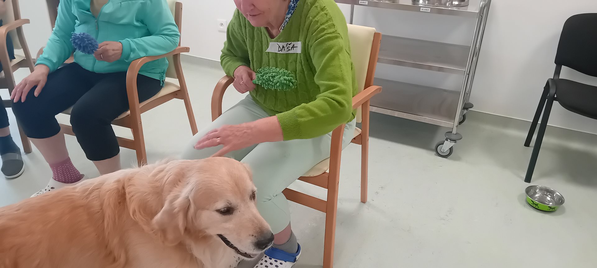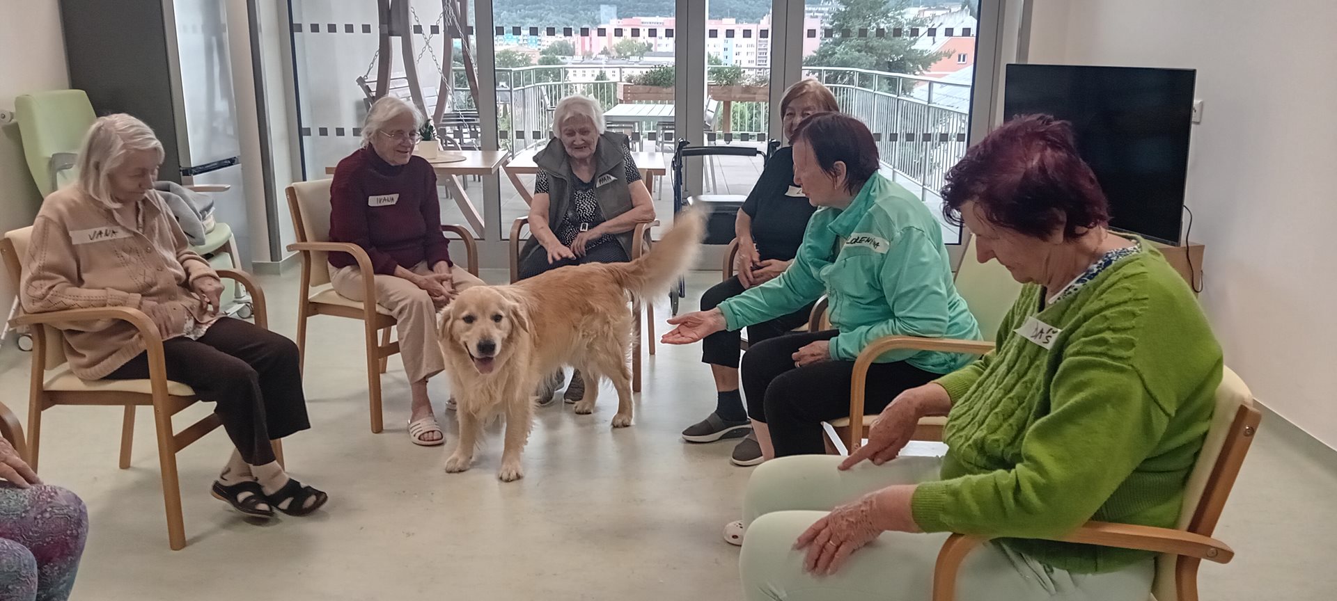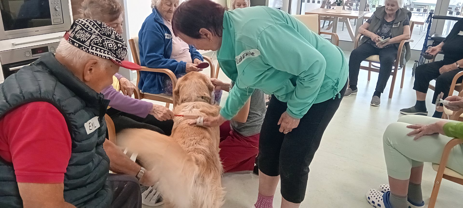 Setkání se psími kamarády je vždy potěšením. Canisterapie přináší klid, úsměv a radost, kterou si naši obyvatelé užívají plnými doušky.