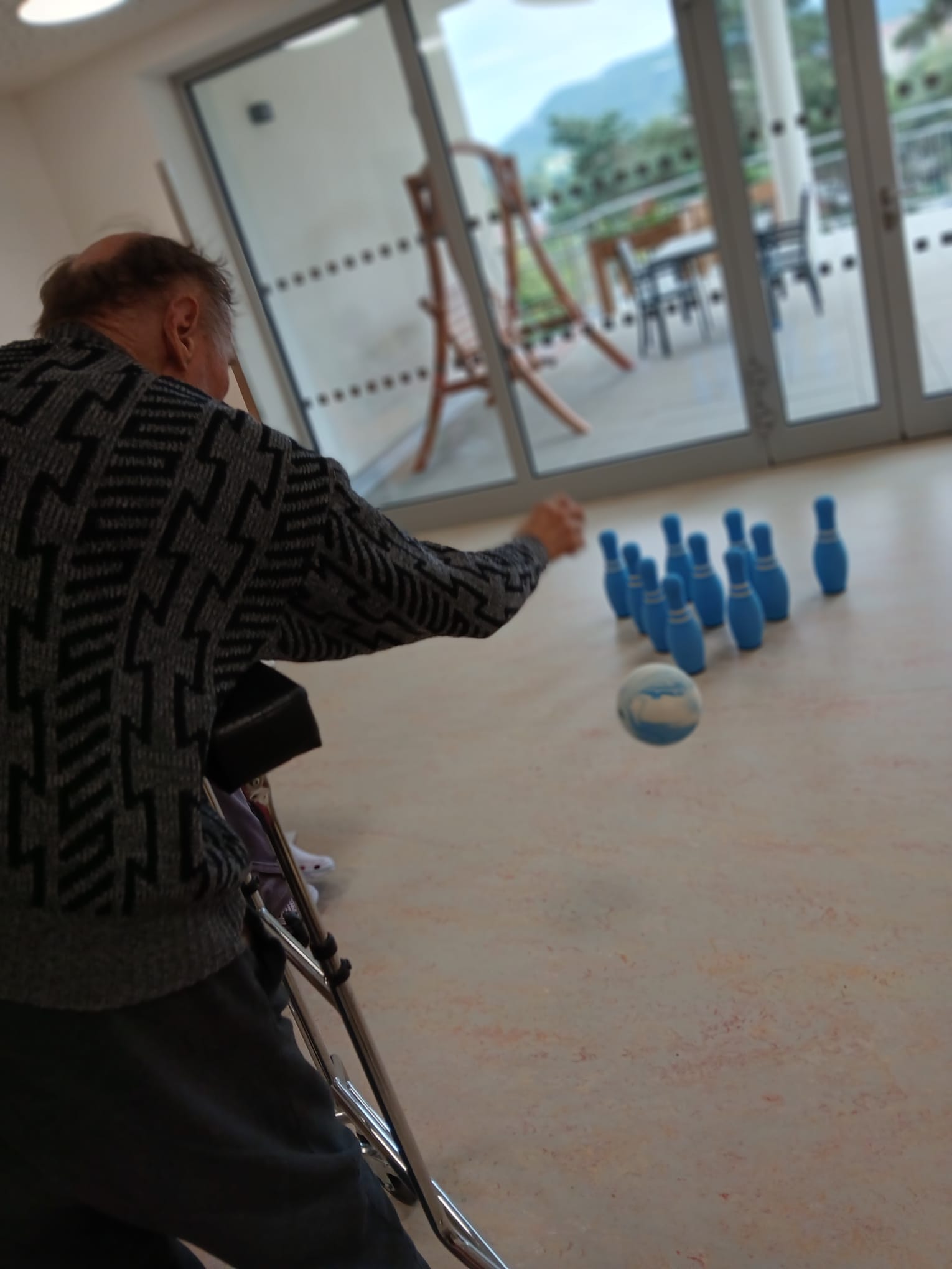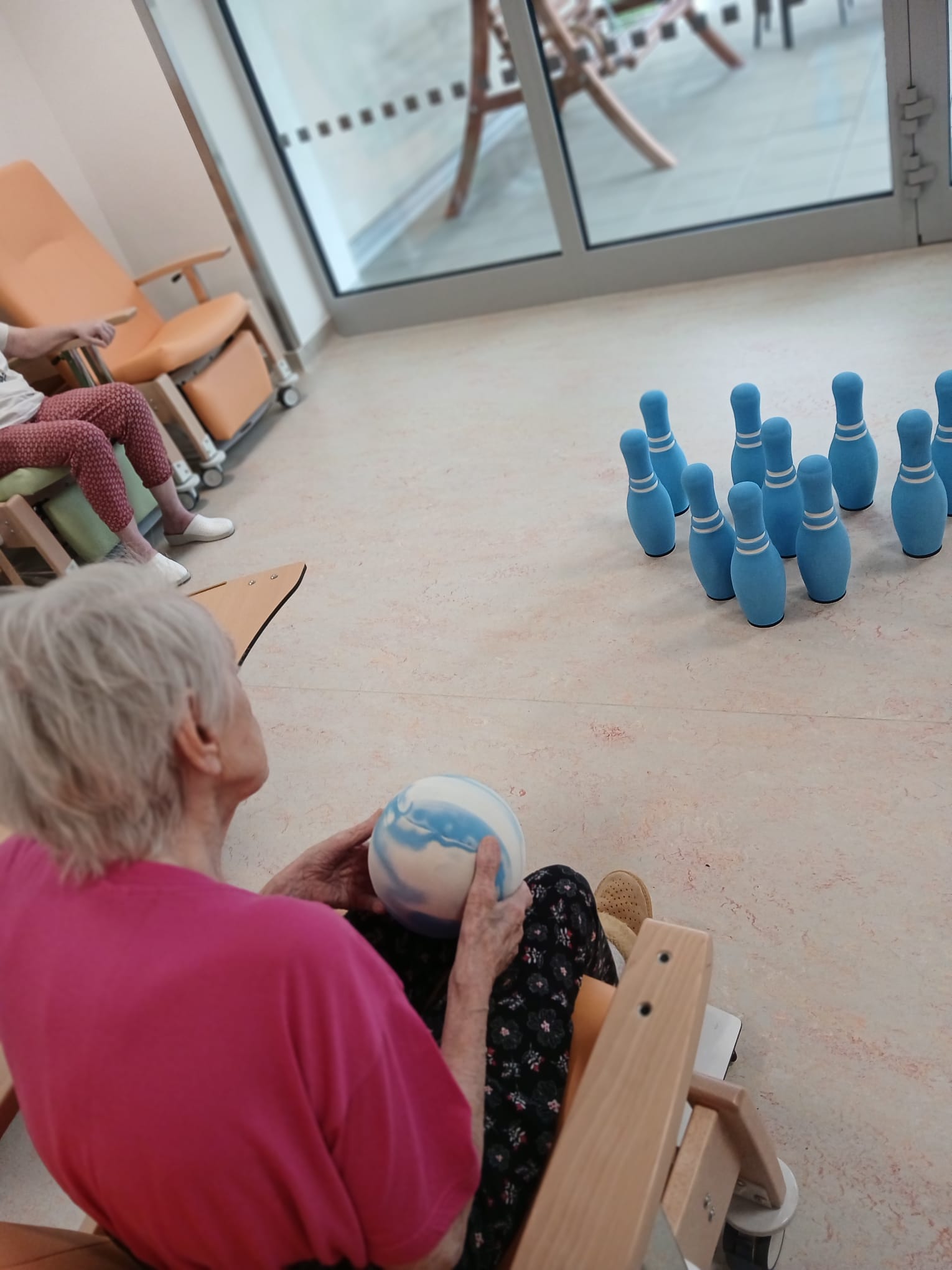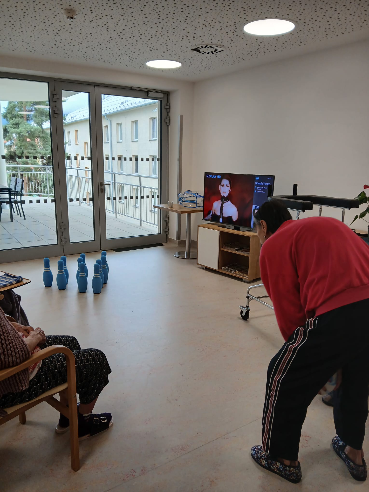 U nás se rozhodně nenudíme! Kuželky jsou oblíbenou zábavou – a když padne strike, nechybí radostné výkřiky ani tanečky vítězství. Rádi si zahrajeme i společenské hry, jako Člověče, nezlob se, které trénují paměť, postřeh a přinášejí spoustu zábavy.