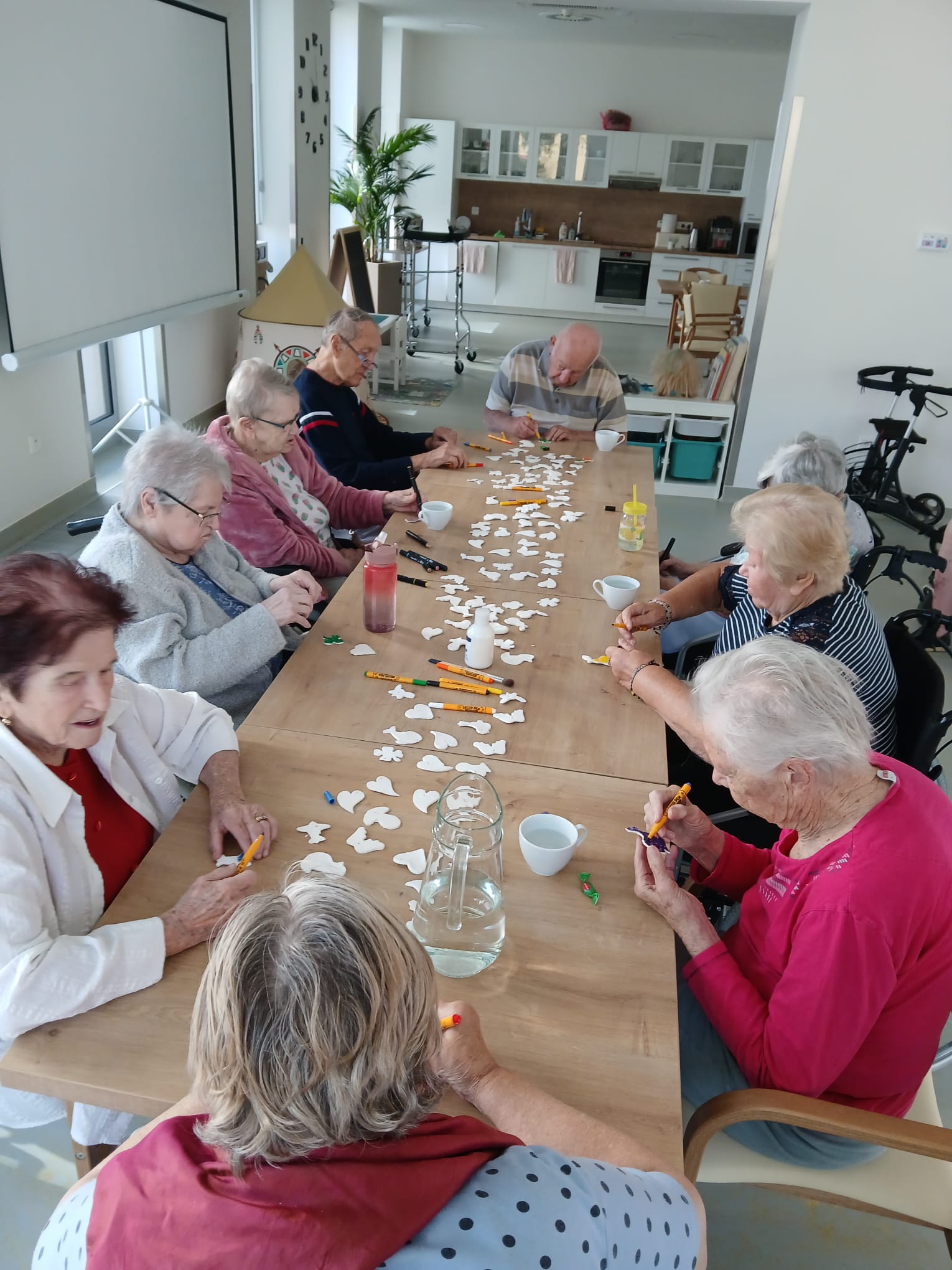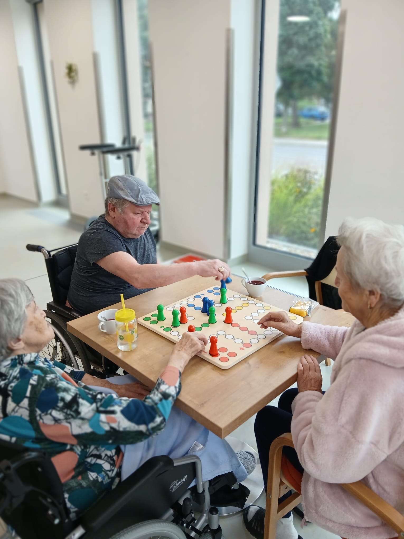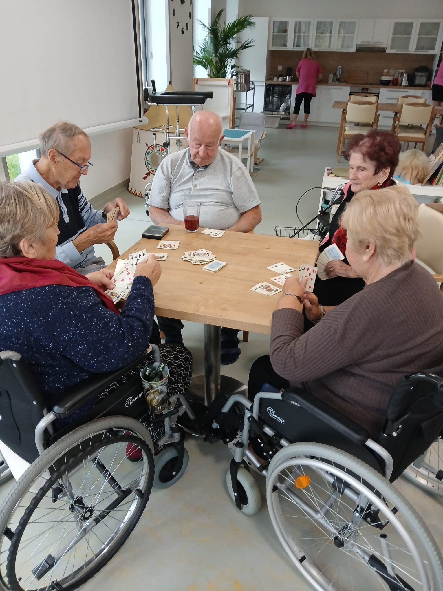 U nás se rozhodně nenudíme! Kuželky jsou oblíbenou zábavou – a když padne strike, nechybí radostné výkřiky ani tanečky vítězství. Rádi si zahrajeme i společenské hry, jako Člověče, nezlob se, které trénují paměť, postřeh a přinášejí spoustu zábavy.