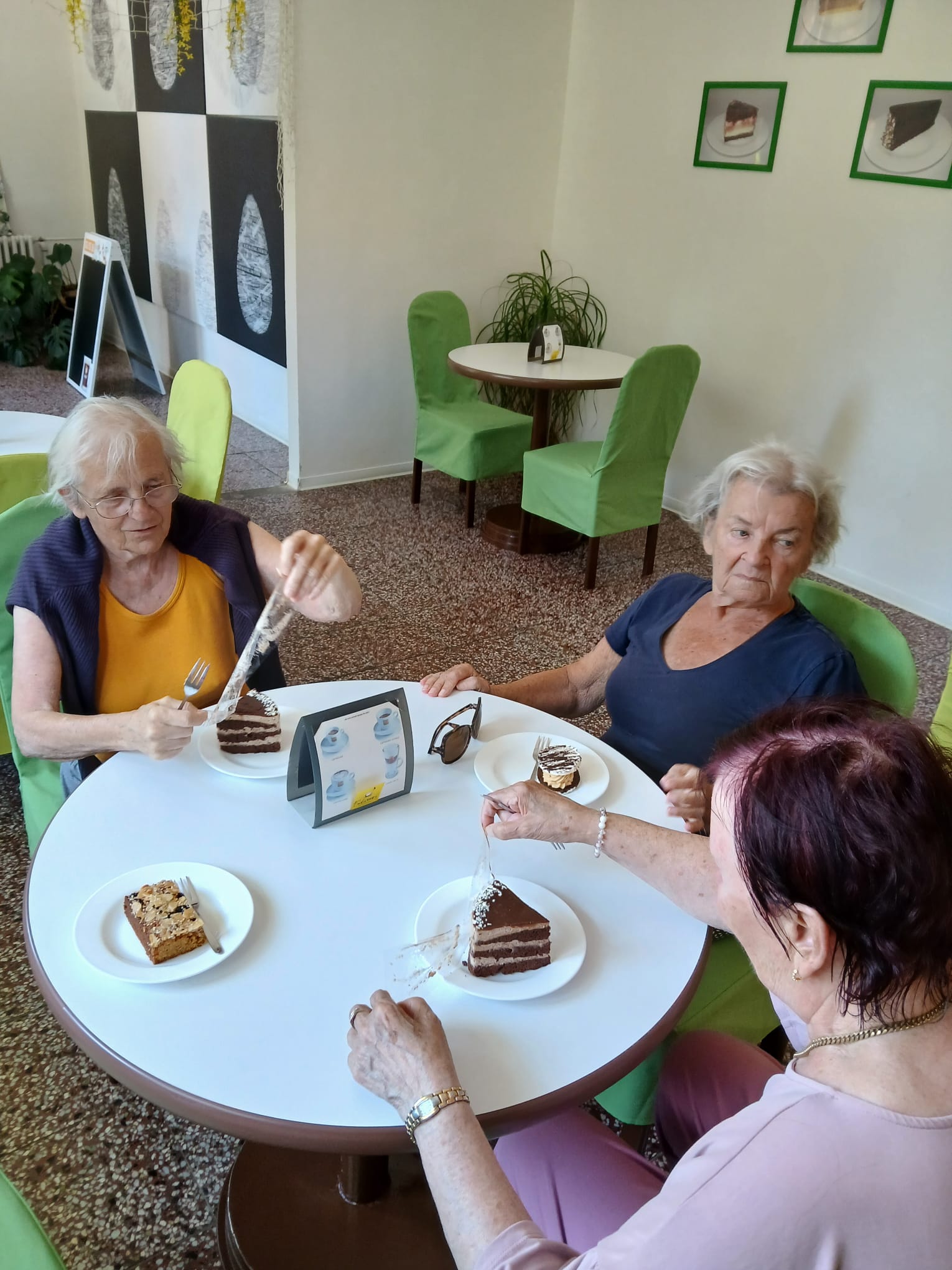Nejen na výletech, ale i v Kopřivnici jsme si užívali sladké chvíle. Navštívili jsme cukrárnu na Novém náměstí, kde jsme si pochutnali na kávě, zákuscích a užili si příjemné odpoledne plné smíchu a milých rozhovorů. Děkujeme personálu za srdečné přijetí!