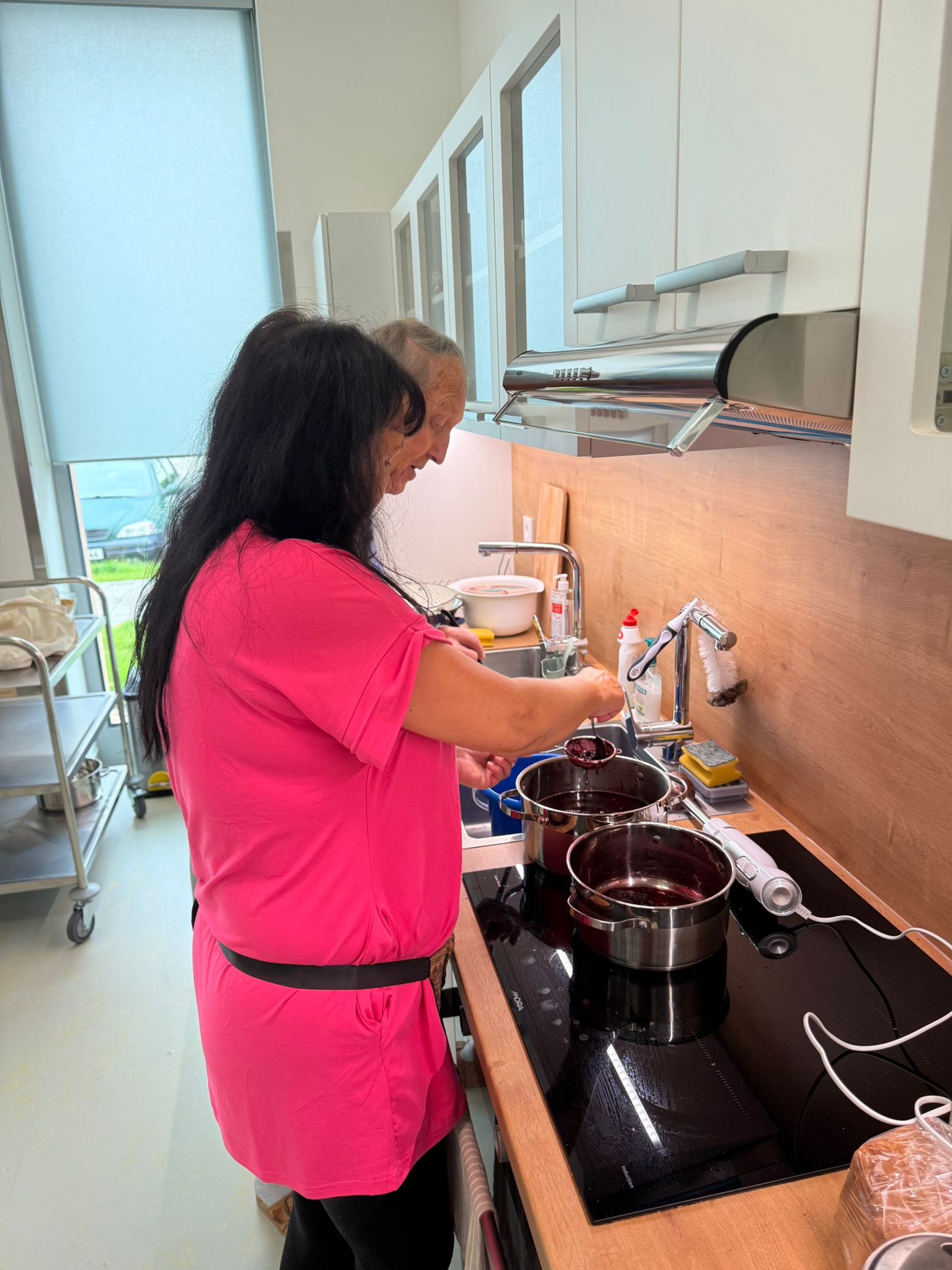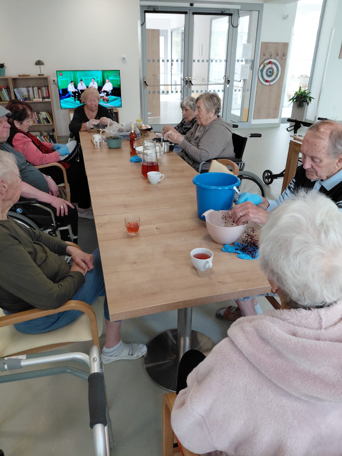 Podzimní dny jsme si zpříjemnili přípravou domácího bezinkového likéru. Každý přidal ruku k dílu – někdo míchal, jiný ochutnával, a hlavně jsme si krásně popovídali o starých receptech a rodinných tradicích. Bylo to srdečné odpoledne plné pohody.