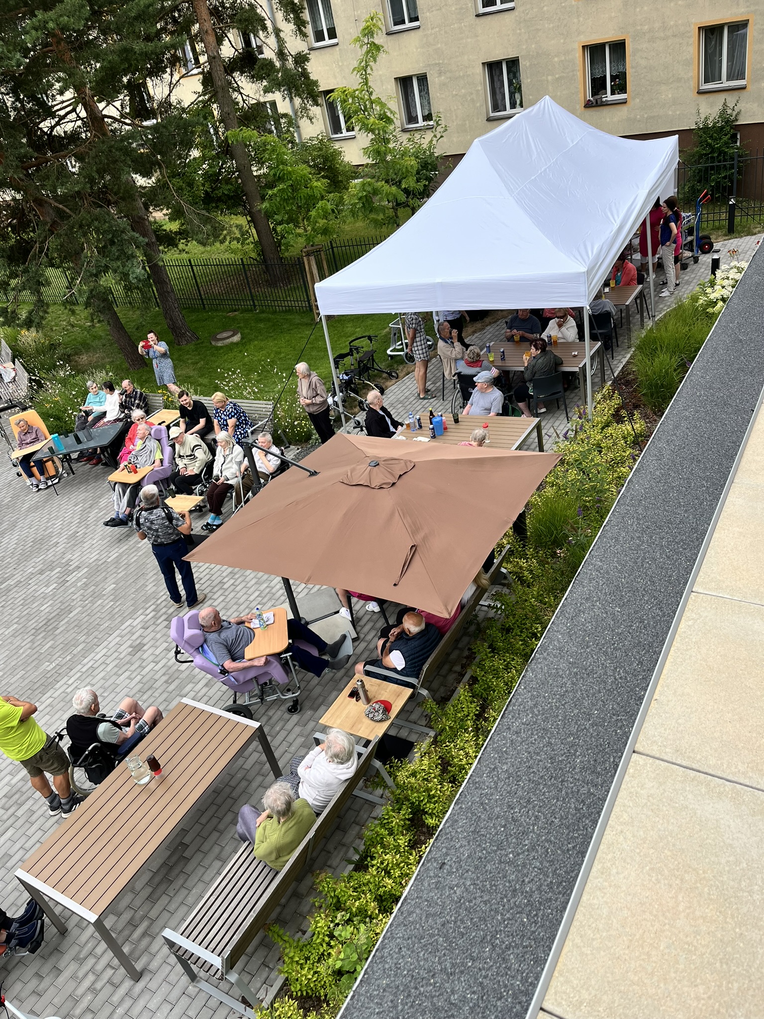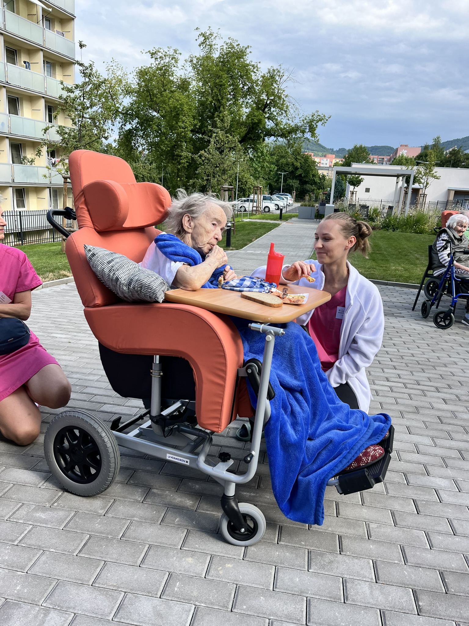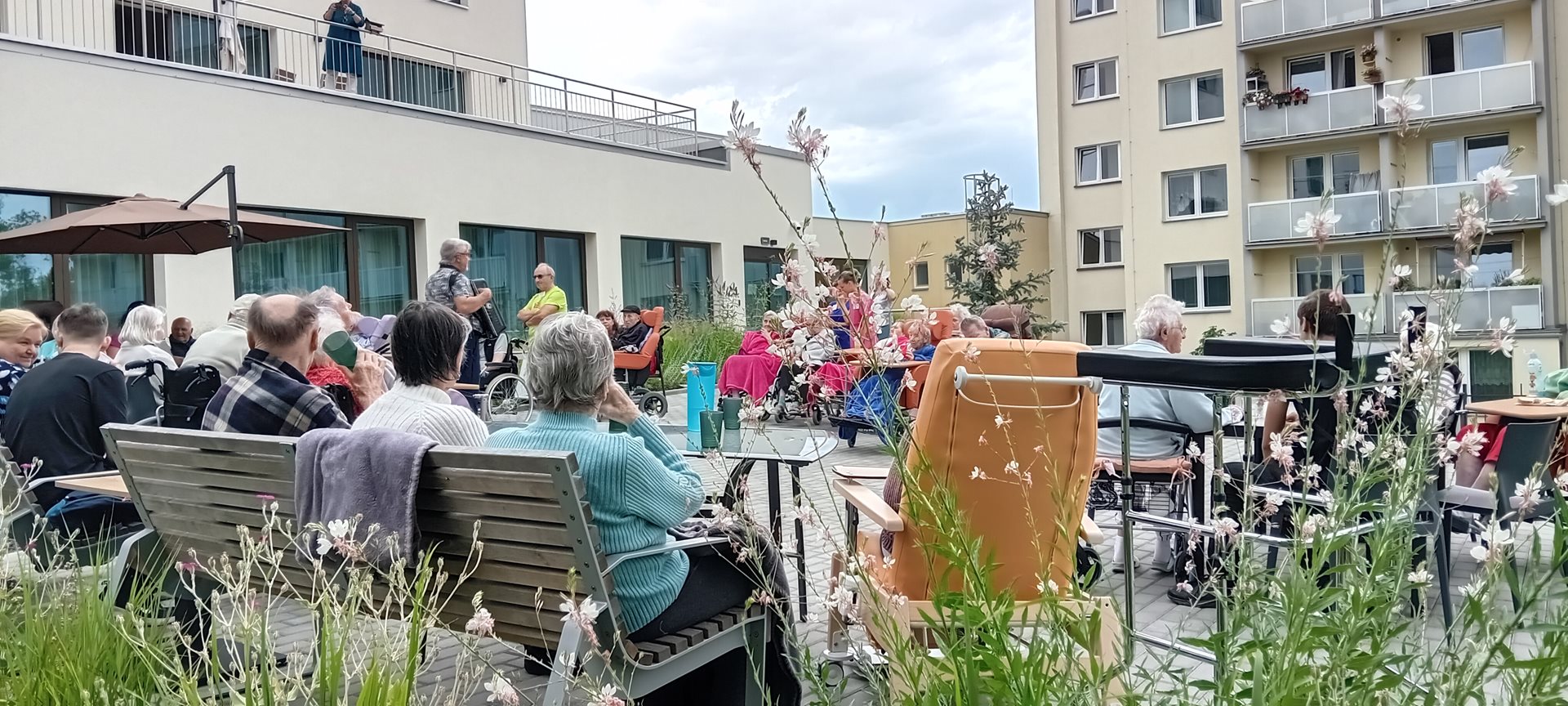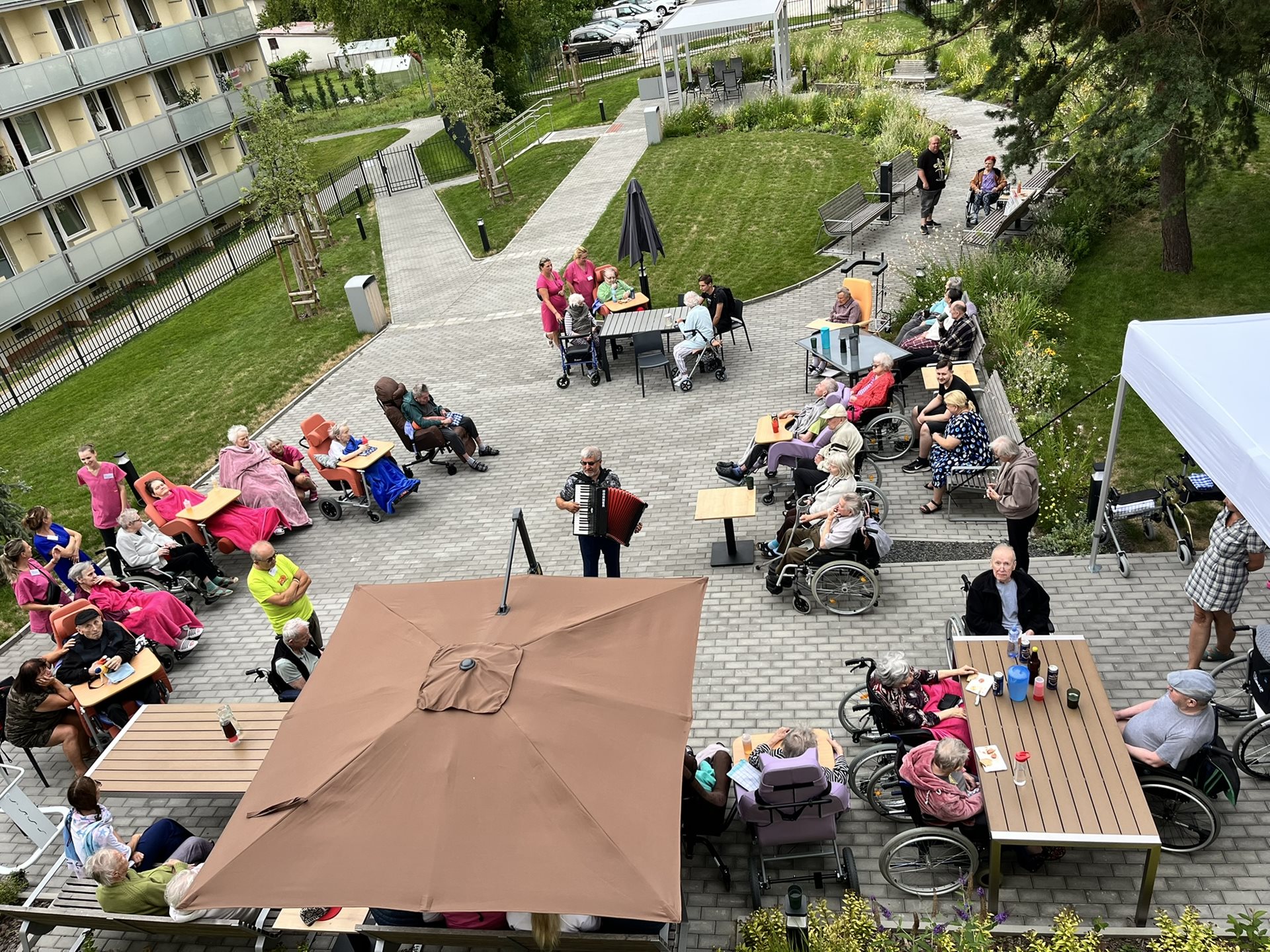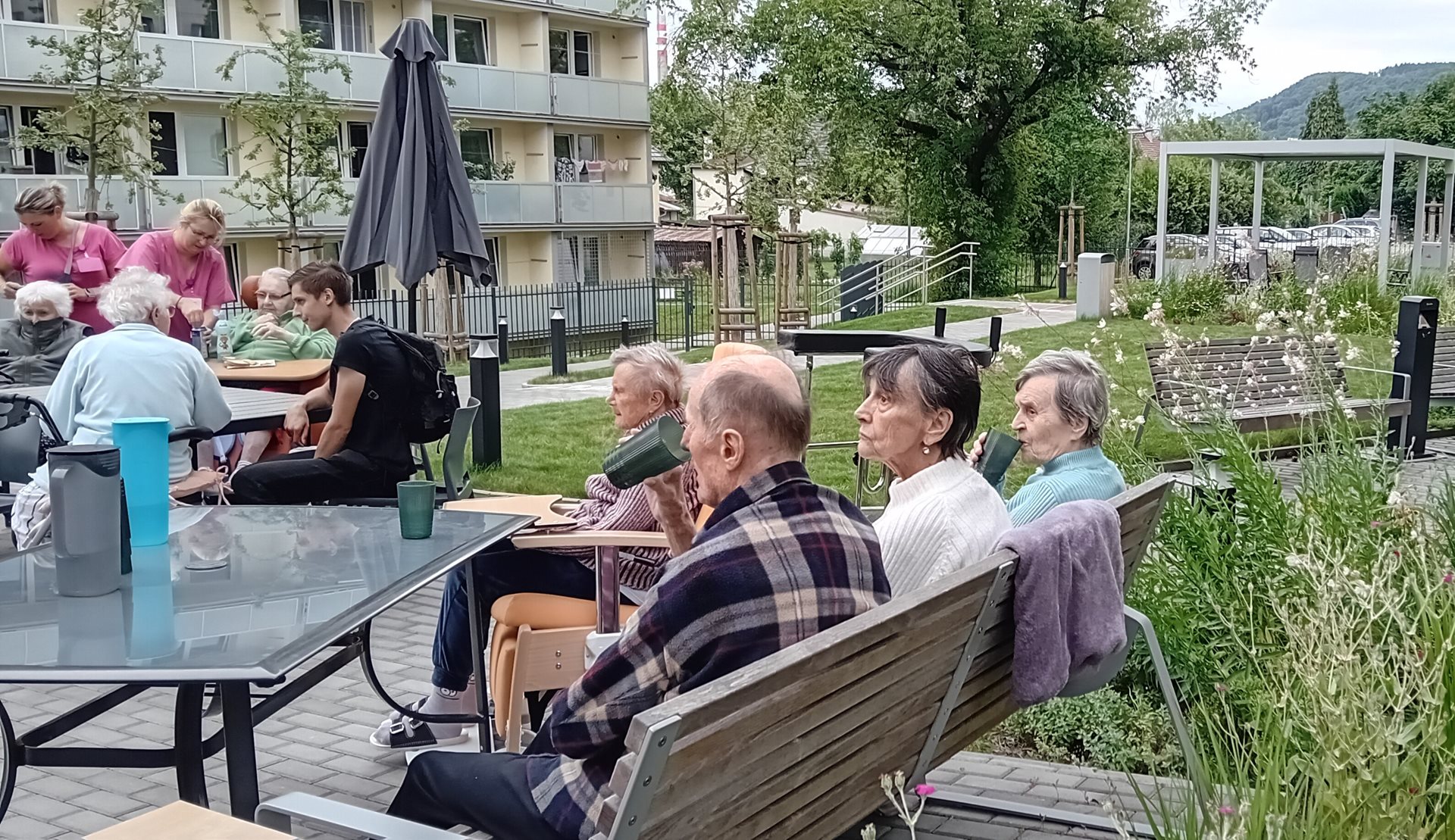 Celý tým domova se snažil o komfort našich klientů, střídavě vycházelo sluníčko nebo zase foukalo, takže se běhalo pro svetříky a deky, ale ohromně si to všichni užili.